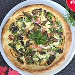Sos, ser, boczek, pomidory, ser wedzony, zurawina, oregano.42,00 zł -